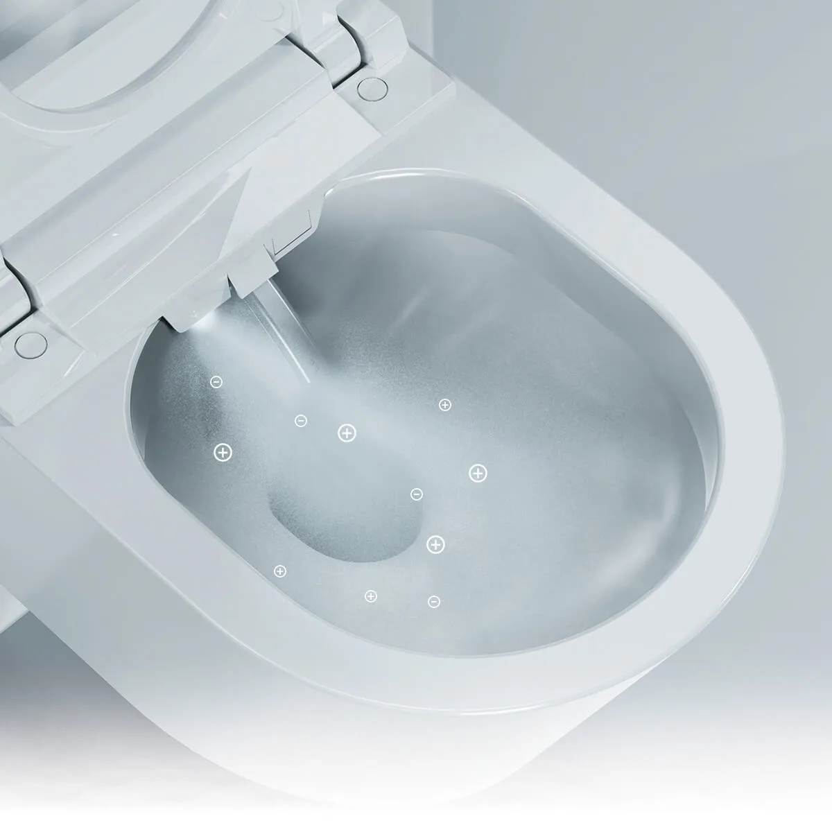 Toaleta myjąca w trakcie mycia jest natryskiwana z wykorzystaniem wody elektrolitycznej.