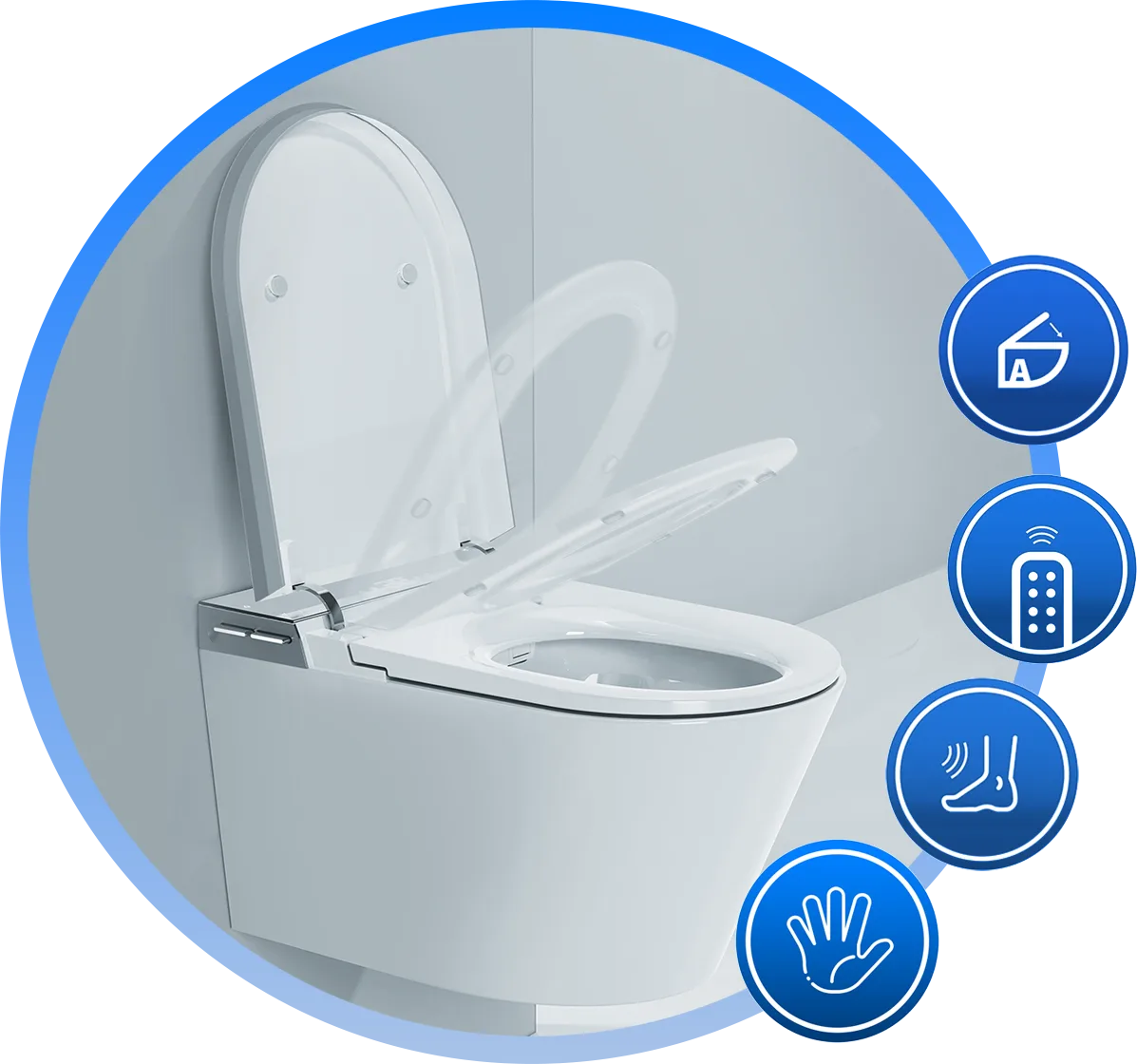 Virtual Button umożliwia otwieranie i zamykanie pokrywy bez użycia rąk. Wystarczy prosty ruch stopą w wyznaczonym obszarze, aby uruchomić funkcję — higienicznie, intuicyjnie i bez kontaktu z powierzchniami.
