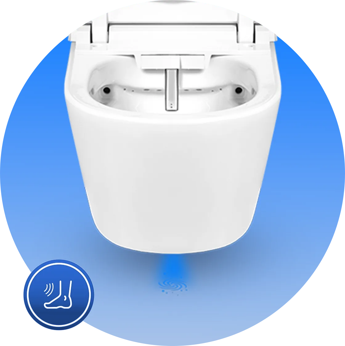 Uruchom spłukiwanie za pomocą prostego ruchu stopy. To higieniczne i intuicyjne rozwiązanie, które eliminuje konieczność dotykania przycisków lub powierzchni toalety.