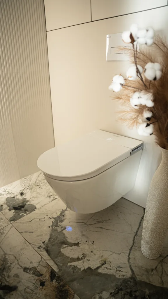 - Wizualna lekkość: Brak dodatkowej baterii bidetowej i podejść wodnych sprawia, że łazienka wydaje się optycznie większa i bardziej uporządkowana.