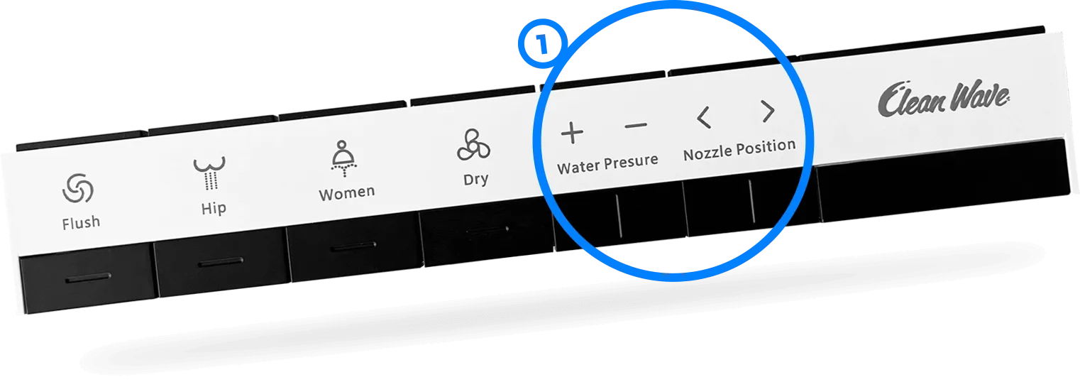 Naciskając odpowiednie przyciski można dostosować pozycję dyszy do własnej fizjonomii oraz ustawić ciśnienie wody odpowiadające naszym potrzebom.