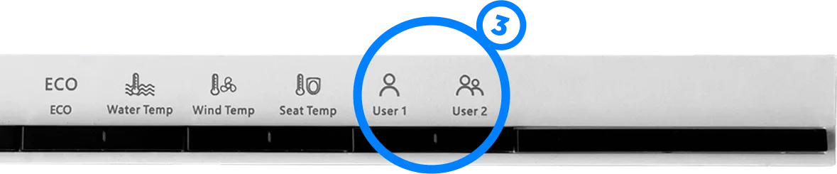 Gdy wszystkie funkcje toalety dostosujesz do siebie, po prostu przytrzymaj przycisk zapisuj przez 5 sekund. Panel sterujący pozwala na przechowywanie ustawień dla dwóch osób, by zapewnić maksymalny komfort użytkowania.