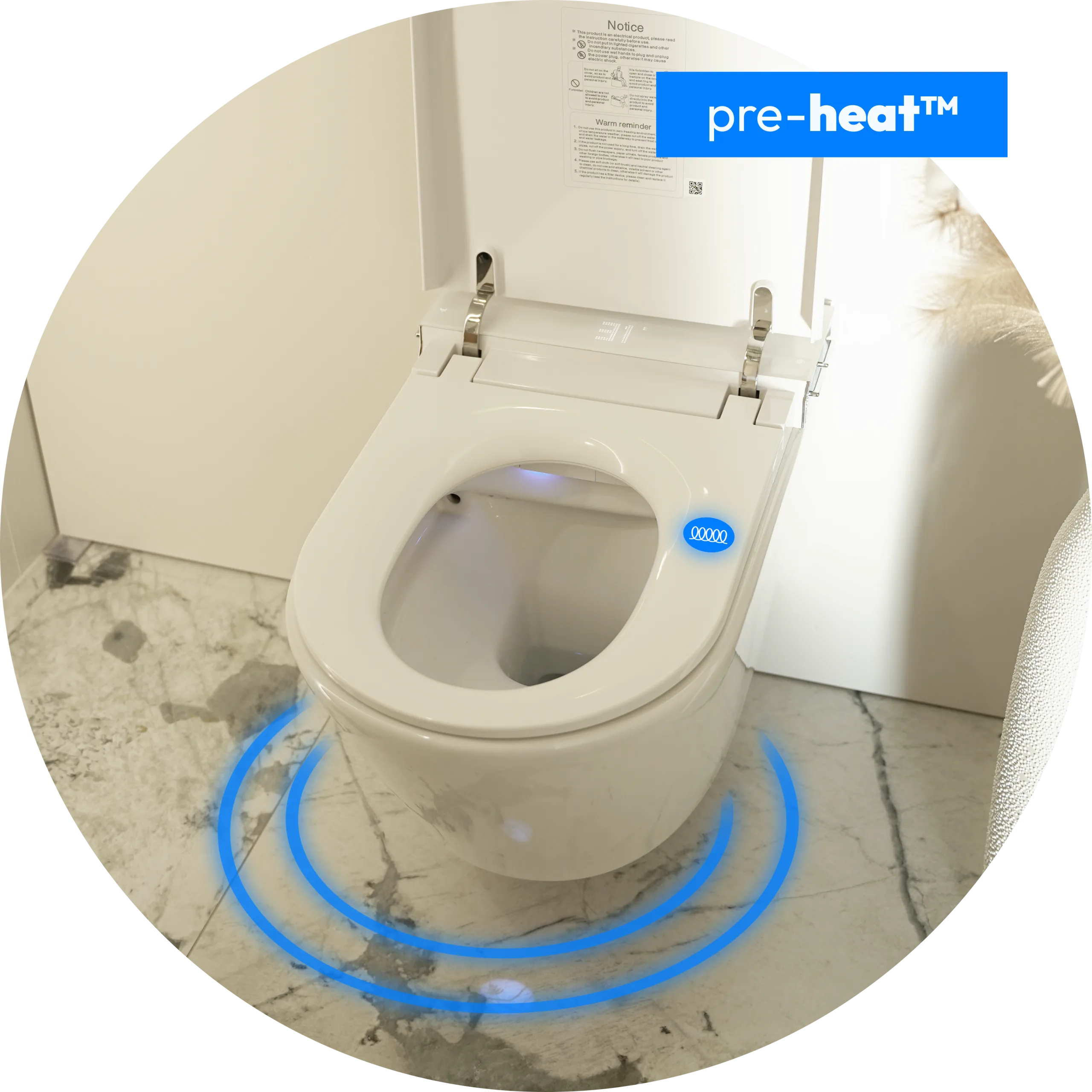 Deska wykorzystuje czujnik obecności i funkcję wstępnego podgrzewania. Gdy zbliżasz się do toalety, system przygotowuje ją do użycia — bez czekania, bez dotykania. Pomoże się rozluźnić.