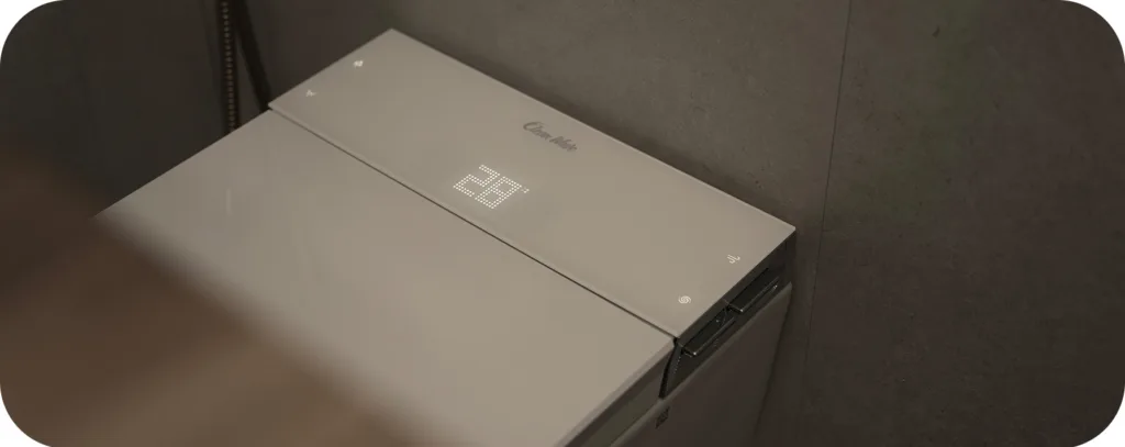 - Praktycznie zero czyszczenia: Samoczyszcząca się dysza, oraz miska sprawiają, że możemy zapomnieć o ostrej chemii przy sprzątaniu toalety. Dzięki wodzie elektrolitycznej i sterylizacji światłem UV mamy pewność, że toaleta jest higienicznie czysta